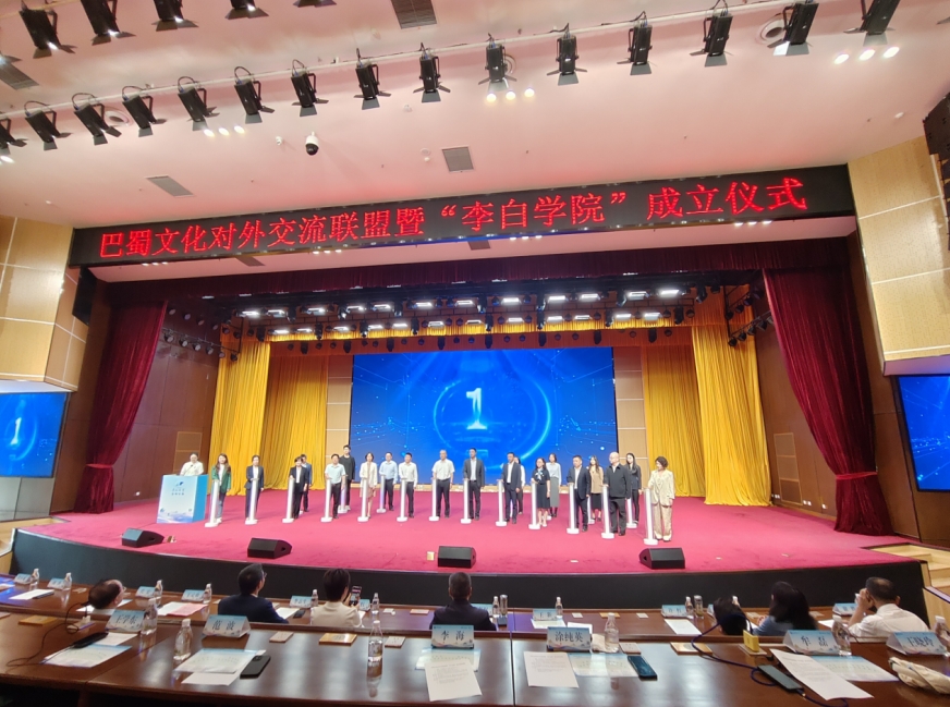 5月13日,本会常务副会长汪辉秀、秘书处秘书左雪应邀参加在江油市举行的巴蜀文化对外交流联盟暨“李白学院”成立仪式。