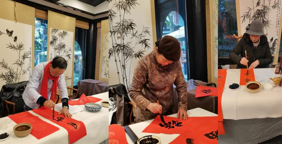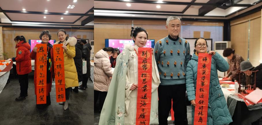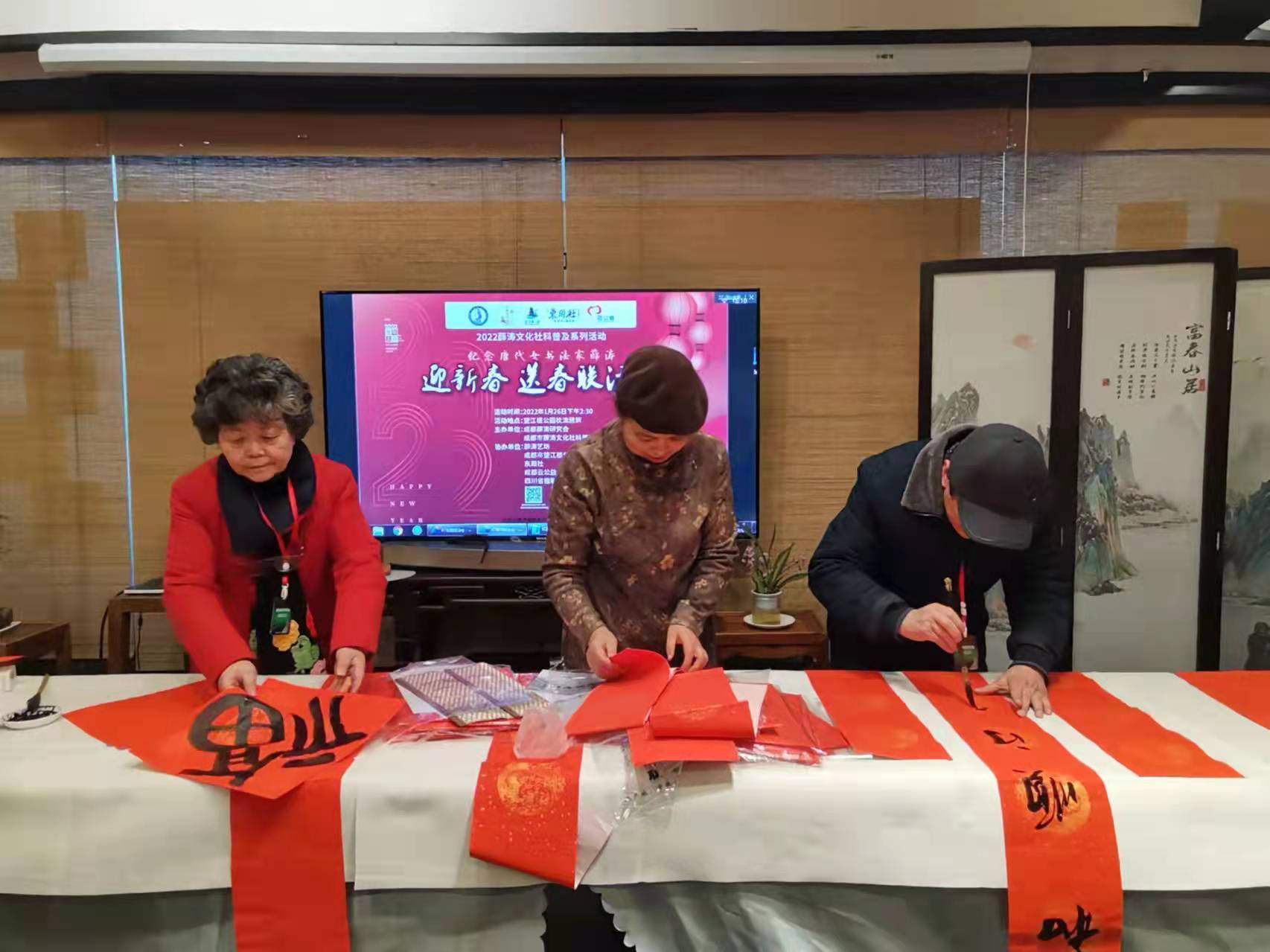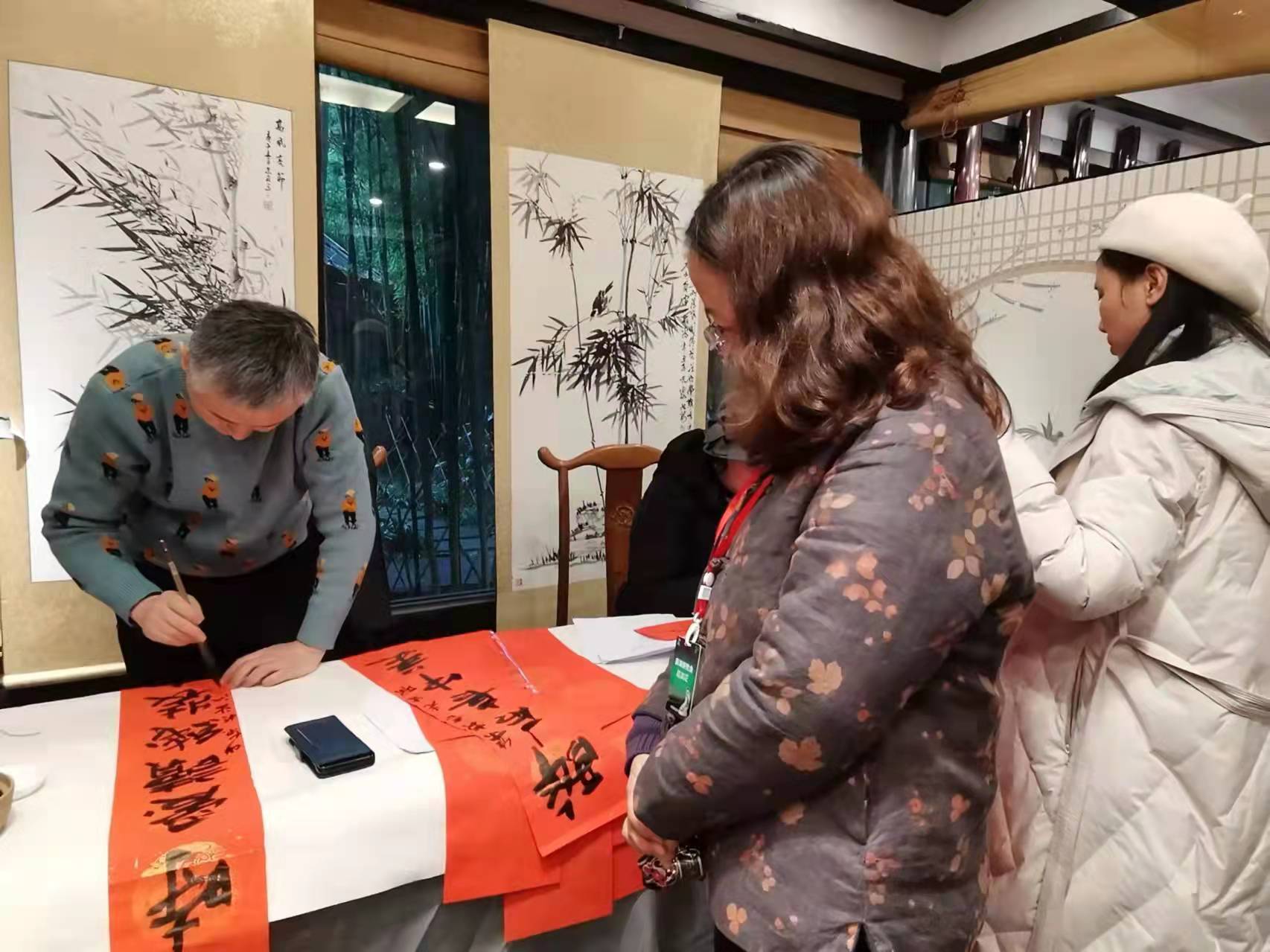 四川省楹联学会副会长李兴辉、成都市书法家协会原秘书长袁碧秀、四川徐悲鸿张大千艺术研究院办公室副主任梅渝林、成都薛涛研究会常务副会长谢天开、副秘书长周渝霞、散花楼女子诗社社长陶佳桂等现场为观众书写了薛涛与望江楼主题对联及春联100余副。