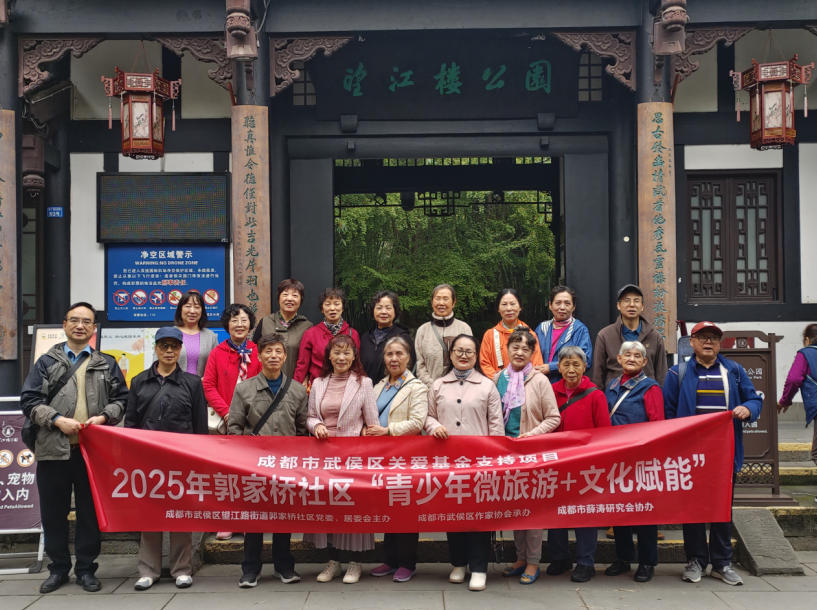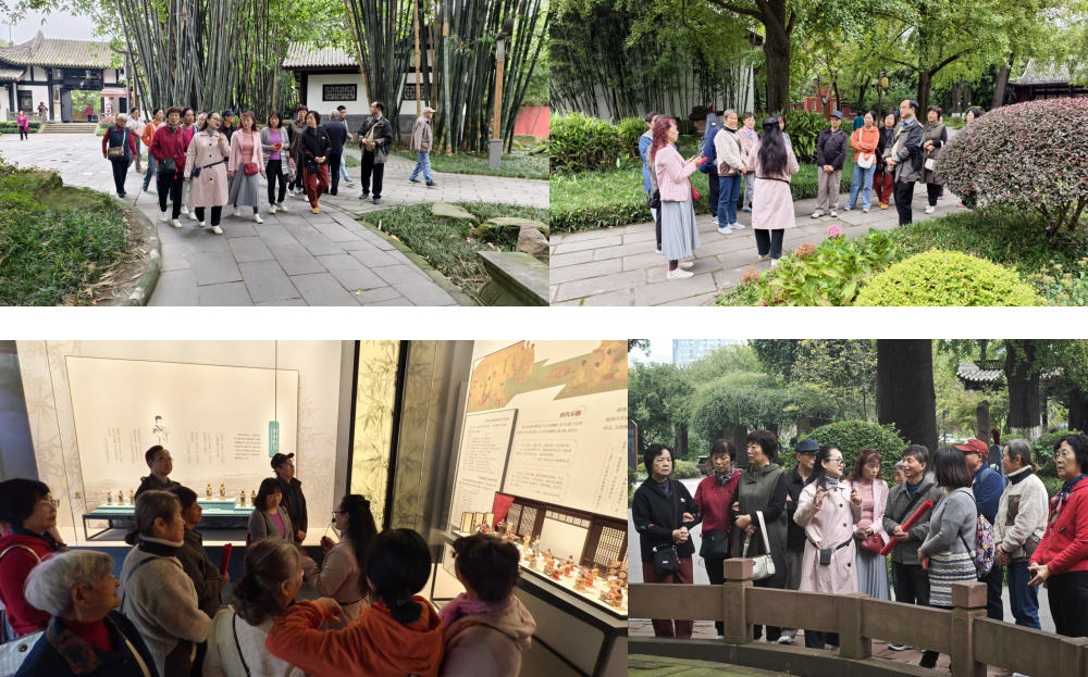10月28日,本会常务副会长汪辉秀研究馆员带领武侯区望江路街道郭家桥社区居民和薛涛文化爱好者等近20人参观游览望江楼公园,带领参与者深度了解薛涛文化、望江楼文化、竹文化、楹联文化等望江楼公园特色文化。