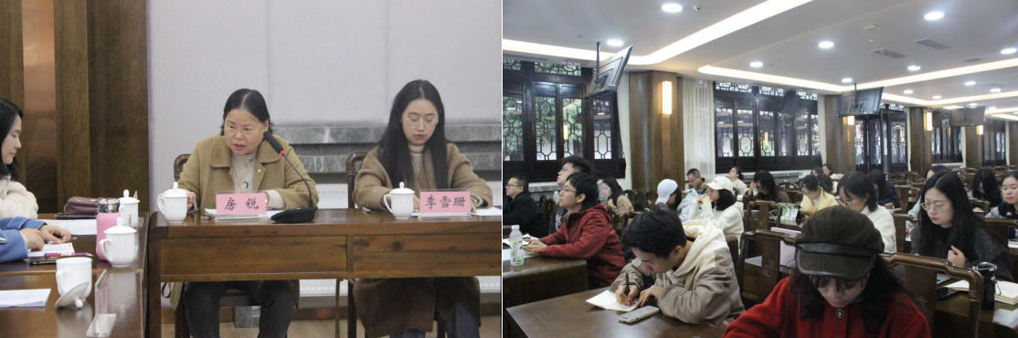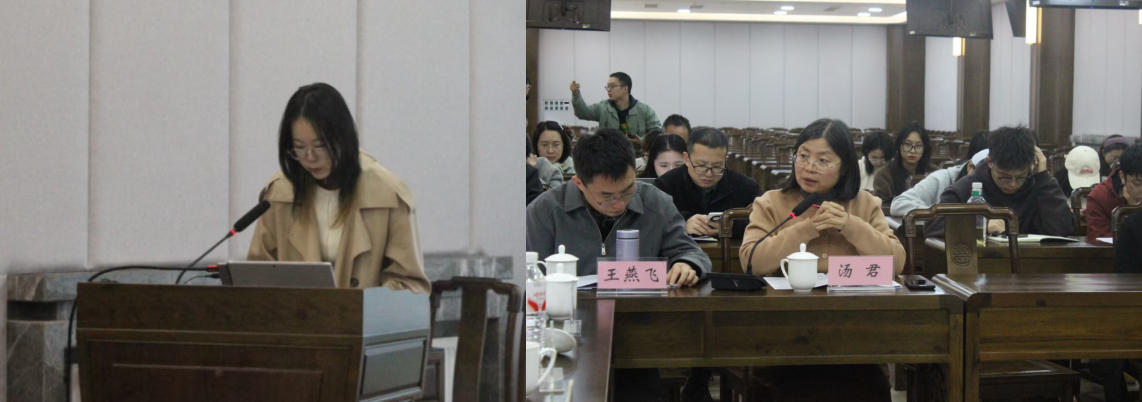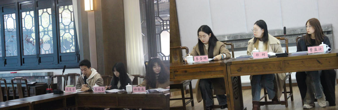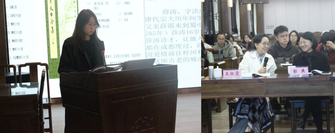 第二场由四川师范大学博士研究生阎震宇主持,来自四川师范大学文学院的硕士研究生郑柯、黄新欣、张茜围绕会议主题做文章汇报。郑柯汇报《“男子作闺音”到“女性自言”——从<宫词>看女性书写》,由李雪珊评议;黄新欣汇报《花蕊夫人<宫词>与五代时期的成都》,由陈宁评议;张茜汇报《黄峨[凭阑人]<足古四首>解读》,由汤君评议。